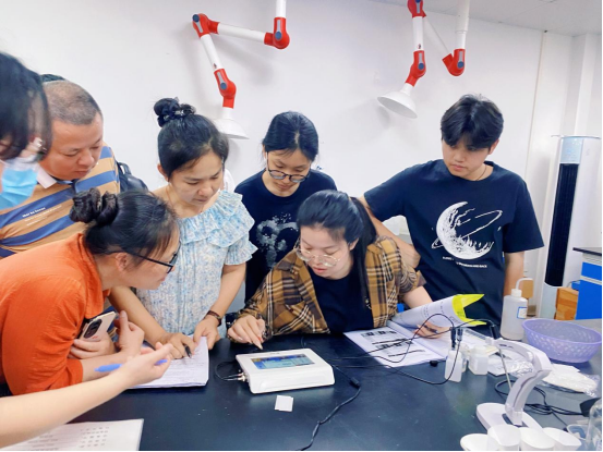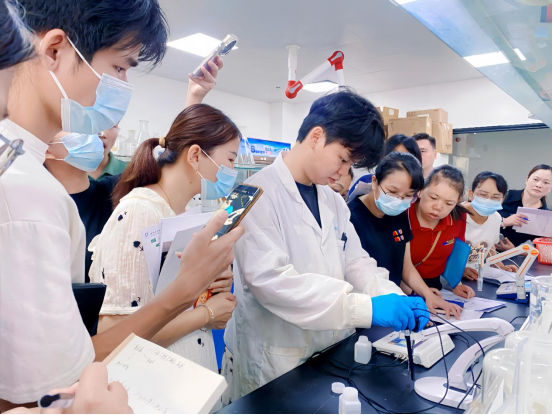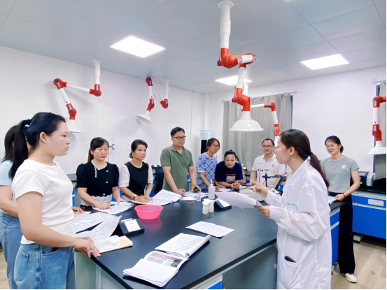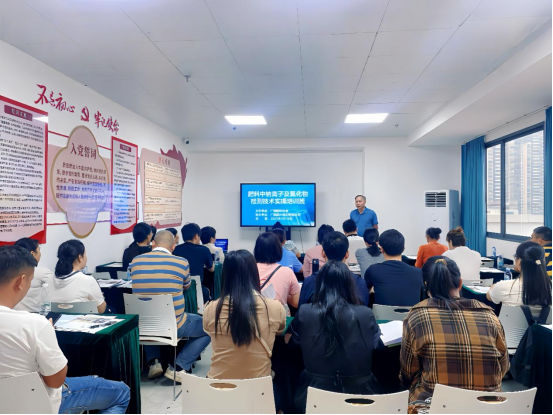 为响应新标准和区内肥料生产企业对完善检测“钠离子”与“氟化物”的条件及技术水平提升的需求,同时为尽快提高我区肥料生产企业的品控水平,降低质量风险,特举办本次培训班。培训采用“理论讲授+实践操作”相结合的方式,由公司专业讲师、技术骨干结合实践讲解钠离子和氟化物检测的理论知识和国家标准要求,并进行实操演示。学员通过实操掌握检测的手法、细节等要领。广西肥料协会将为通过考核的学员颁发“肥料中钠离子及氟化物检测技术培训”合格证书。 现场解说理论知识 现场演示操作